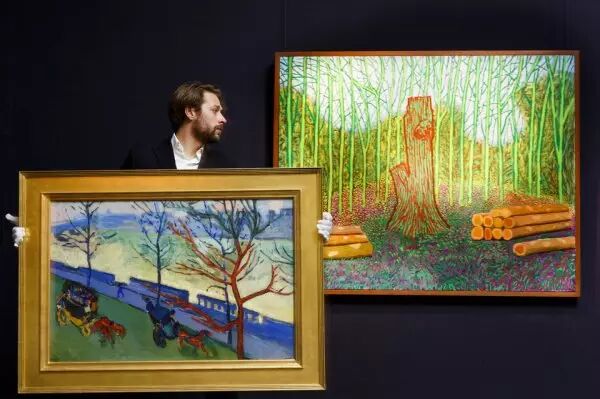 右边这幅画是大卫·霍克尼的《伐倒的树木》,这幅画卖出了530万美金…这个价钱可以买好几辆兰博基尼了……